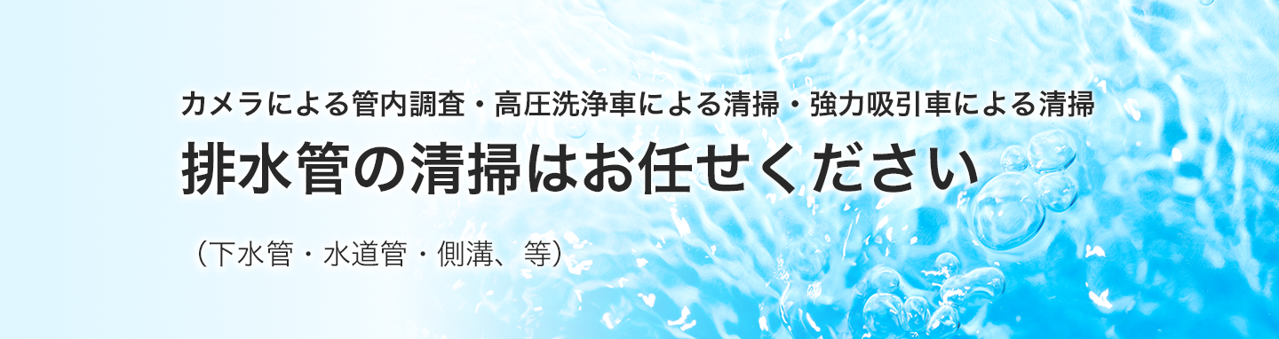 カメラによる管内調査・高圧洗浄車による清掃・強力吸引車による清掃など、排水管の清掃はおまかせ下さい。